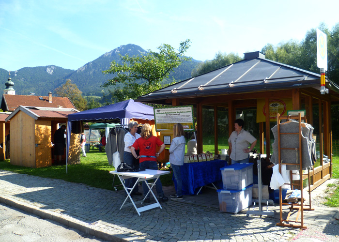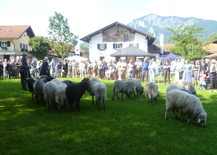 Begleitet von ihren Züchtern und Haltern fanden die jungen Widder von der auf 1.400 m ü. NN gelegenen Alm ihren Weg ins Tal. Auf der Festwiese in Unterwössen wurde unterdessen emsig ihr Empfang vorbereitet. Ein Schafgatter und Verkaufsstände wurden aufgebaut. Hier war alles rund ums Alpine Steinschaf zu finden; Wollprodukte, ein sehr schmackhaftes Steinschaf-Gulasch und vieles mehr. Der Pfarrer der Gemeinde Unterwössen stand selbst am Grill des Bratwurststandes. Auch Spinnräder waren aufgestellt und vor den Augen der Besucher wurde Garn aus Steinschafwolle gesponnen.